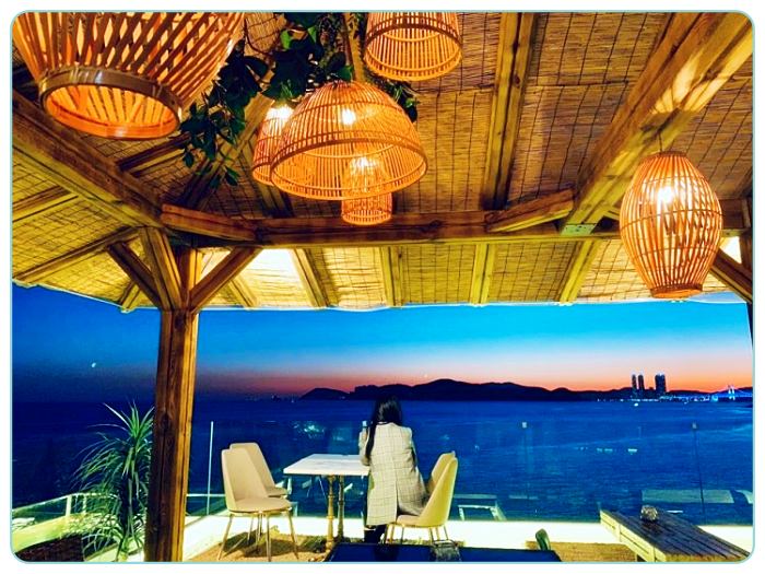 일단 뷰맛집임 산책하면서 지나가다 이쁠꺼같아서 저녁에 바로 갔는데 역시나 뷰가 이뻤음 안주는 잘 안먹어서 모르겠으나 분위기는 일단 좋음 잔잔한 음악과 와인한잔에 바닷가 보며 데이트하기 좋을듯