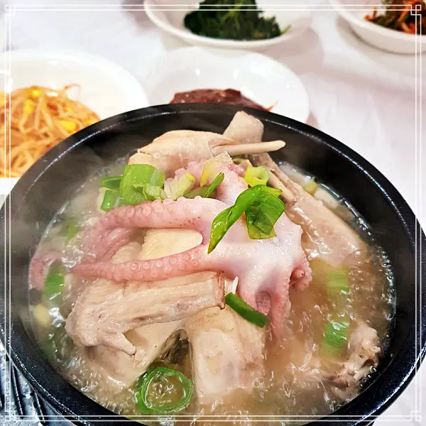 장항, 서천 지나가다 봤을 때는 그냥 평범한 한 그릇 8천원, 닭 한 마리 삼계탕 가게인 줄 알았는데 완전 맛집. 정말 절대 평범한 맛이 아니고 고급진 맛이었어요👍 사장님도 너무 친절하셔요. 장항, 서천 숨은 낙지삼계탕, 간장게장, 게장 백반 한 그릇 8천원, 닭 한 마리 삼계탕 맛집