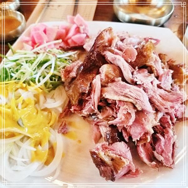 직접 팬 장작으로 5시간 동안 훈연한 오리구이 나오자마자 정신없이 먹다가 정신 차리고 사진을 찍음! 히힛~ 직접 팬 장작으로 5시간 동안 훈연한 오리구이 넘 맛있어영!!!! 통오리 밀쌈, 녹두지짐, 통밀 칼국수도 맛있드라규영!!!!!! 테이블 서빙 해주시는 분도 넘흐 친절하시그영!!!!! 아주 잘먹고 가영!!!!♡-♡