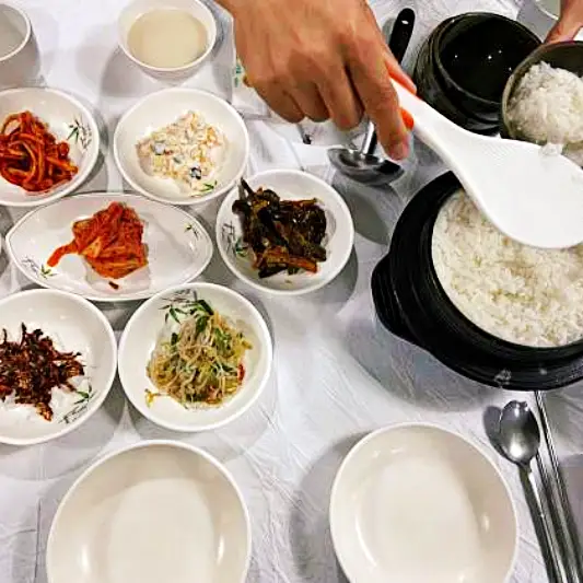 여주 햅쌀밥은 여주에서 재배된 햅쌀을 솥밥으로 지어서 먹는 음식입니다. 햅쌀은 쌀의 한 종류로, 쌀알이 작고 단단하며, 찰지고 쫄깃한 식감이 특징입니다. 솥밥으로 지으면 쌀알이 더욱 부드럽고 고소한 맛이 납니다. 여주 햅쌀밥은 밑반찬으로 김치, 무생채, 오징어젓갈, 멸치볶음 등을 제공합니다. 밑반찬은 계절에 따라 다르게 나옵니다. 여주 햅쌀밥은 한 그릇에 7,000원입니다.