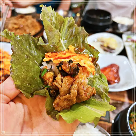 진짜 경주 남산 맛집 말해뭐해네여.. 쌈채소 무한리필 제육볶음 우렁이 강된장 쌈밥 짱 맛탱임 ㅠㅠ 평일에도 웨이팅이 있을만큼 쌈채소 무한리필 제육볶음 우렁이 강된장 쌈밥 찾는 분이 많아지긴 했나봐요 아님 경주 남산 맛집이 핫플인건가요! 장난 없네요! 또 먹으러 갈게요ㅠㅠ