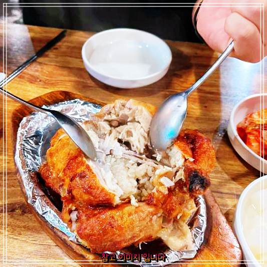 가성비가 정말 좋아요! 한방통닭와 바베큐양념구이 닭똥집 을 다먹는데 가격이 정말착하고 좋습니다. 기본적으로 세팅되는 구성 자체가 다 좋아요. 그런데 줄서는식당2 전참시 이영자 극찬 장작구이 통닭 추천 코너에서 알려져서 그런지 생각보다 찾으시는 분들이 많아서 너무바쁘신것 같아요. 그래서 조금 아주조금 불친절하다고 느껴지기도 한것 같아요.