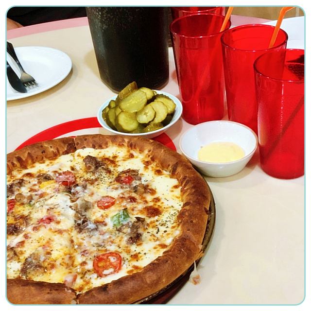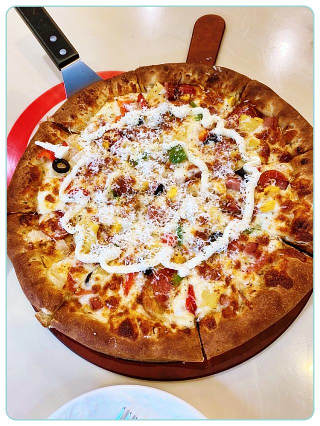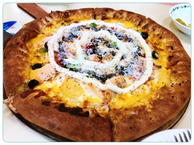 예전부터 진해에 피자집이 잇다는거 알앗는데 안지 15년만에 처음으로 와봣는데 진작 올껄하고 후회햇어요 제일 기본 콤비 시켯는데 맛도 잇고 크기도 크고 치즈를 즉석에서 갈아서 뿌려주시고 친절하시고 마지막에는 선물로 레코드시계까지 받앗어요ㅋㅋㅋ시간을 맞춰서 주셨는데 집에 미친4살 딸아이 하나가 손을 대서 맞지가 않네요ㅠ참고로 이날 먹고 나오자마자 바로 찍어 올리는겁니다!정말 추천!강추!맛집최고예요❤️❤️❤️